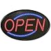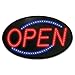Let customers know you are open for business. Uses high-intensity, energy efficient red and blue LEDs. Motion setting feature attracts attention. Economical and long lasting design. Includes power connections and mounting chain. Frame Color: Black Size: 13 x 21 Message(s): Open Material(s): Plastic. Unit of Measure : Each