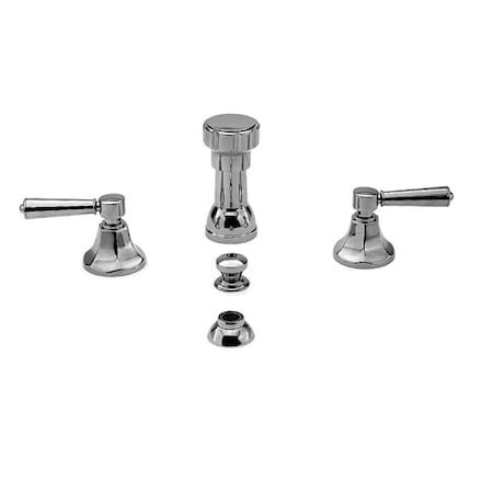 Metropole Double Handle Widespread Bidet Faucet with Vacuum Breaker and Metal Lever Handles A bidet is a low, basinlike bathroom fixture similar in appearance to a toilet that is used for personal hygiene. They come in either vertical or horizontal spray configurations. Most commonly, bidets are floor mounted next to the toilet. Bidets consist of a washing basin, faucet and sprayer. Features: Solid brass Metal lever handles Quarter-turn washer less ceramic disc valve cartridges ADA Compliant Cross Handles Brass valve bodies with valve Basin-mounted aerated spray nozzle and pop-up drain with tailpiece Code compliant vacuum breaker Vertical spray 1/2" valves Finish Features: Available in 25 beautiful finishes New Industry Leading lacquer Finish Process IAPMO Certified and tested Long Life Finishes - 10 Year Warranty Durable, color protected, scratch resistant Green, low VOC, energy efficient finishing process Specifications: Valves : 1/2" Spray : Vertical Material : Brass Number of handles : 4 Handle type : Metal lever Pop-up assembly included : Yes 2.4 gpm