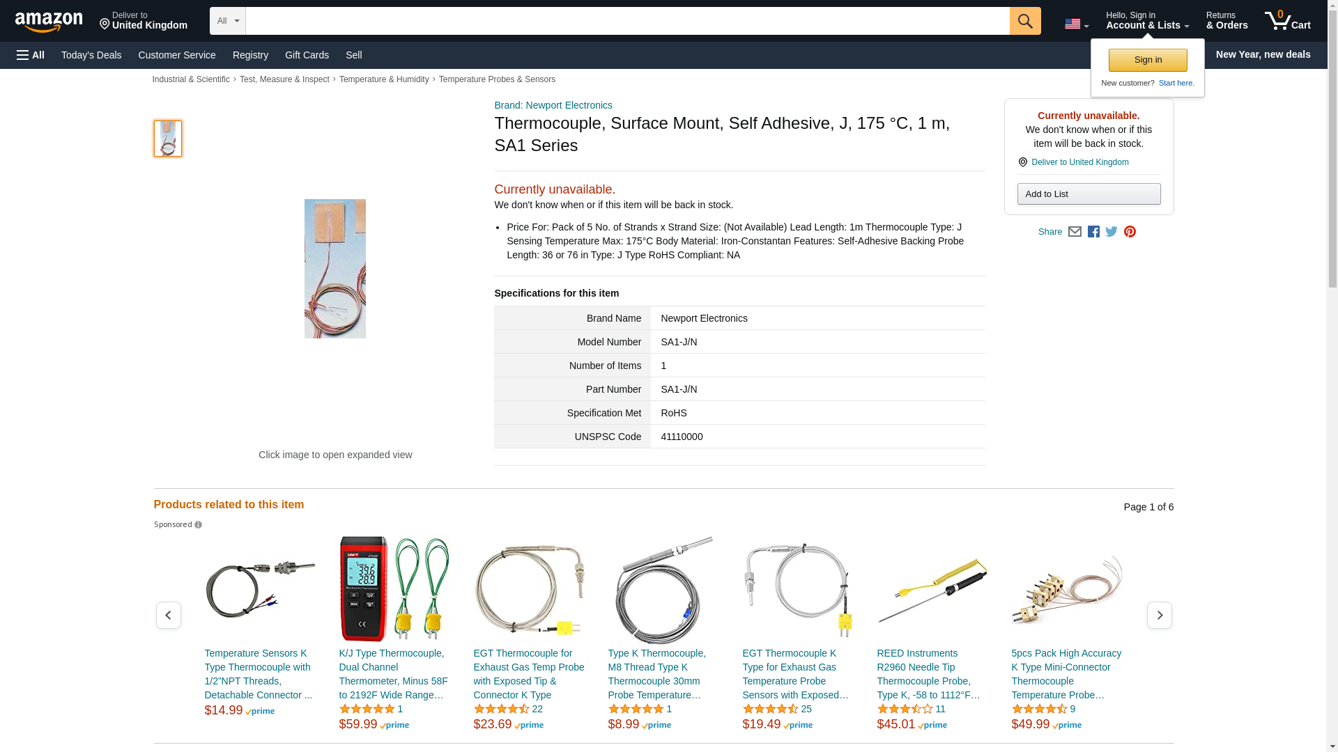 | Feature | <b>Price For:</b> Pack of 5 <b> No. of Strands x Strand Size:</b> (Not Available) <b> Lead Length:</b> 1m <b> Thermocouple Type:</b> J <b> Sensing Temperature Max:</b> 175\xb0C <b> Body Material:</b> Iron-Constantan <b> Features:</b> Self-Adhesive Backing <b> Probe Length:</b> 36 or 76 in <b> Type:</b> J Type <b>RoHS Compliant:</b> NA |