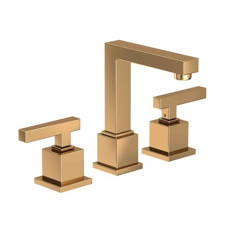 Newport Brass 2030/03N Uncoated Polished Brass (Living) Cube 2 Double Handle Widespread Lavatory Faucet with Metal Lever Handles (Low Lead Compliant)