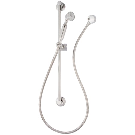 Single Function Wall Mount Handshower Kit with Slide Bar and Adjustable Bracket Since 1989, Newport Brass has developed, designed and delivered classically constructed versatile suites of timeless kitchen, bath and shower products for the discerning customer. With 20 years of commitment to well engineered solid brass designs and an undisputed reputation for performance and durability, Newport Brass continues to handcraft the finest fixtures with strict testing and quality assurance measures. Features: Slide bar hand shower kit Water supply from in-wall supply using diverter valve Includes: No 281 Hand shower No 284 Hose No 285 Supply Elbow No 292 Slide bar with adjustable bracketFinish Features: Available in 25 beautiful finishes New Industry Leading lacquer Finish Process Long Life Finishes - 10 Year Warranty Durable, color protected, scratch resistant Green, low VOC, energy efficient finishing process Specifications: Showerhead Diameter: 2" Connection: 1/2" NPT