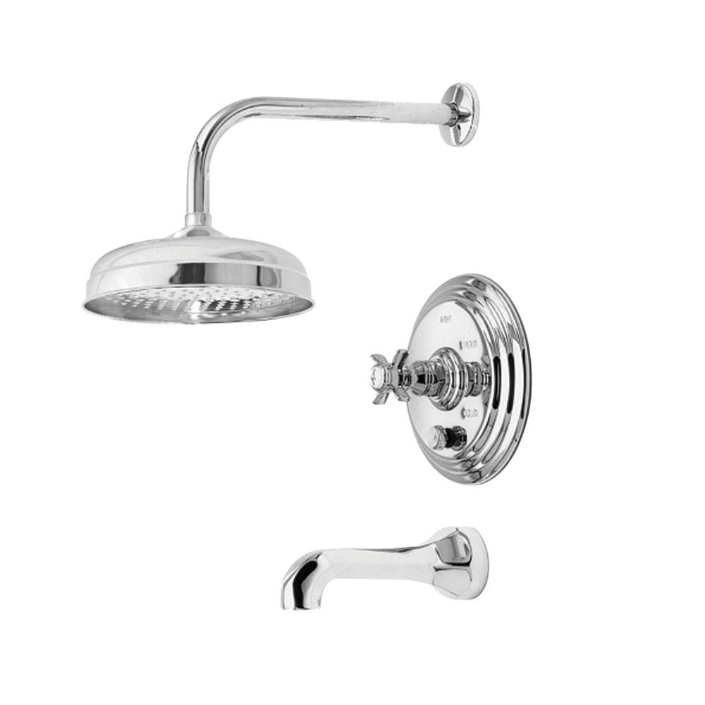 Fairfield Single Handle Pressure Balanced Tub and Shower Trim with Rain Showerhead and Metal Cross Handle The Newport Brass Fairfield Collection features traditional graceful lines. The Fairfield Collection from Newport Brass is a complete suite, offering sink faucets, shower faucets, roman tub fillers and accessories. Newport Brass lavatory faucets are available in several different styles with 25 unique finish options. Every Newport Brass bathroom faucet is CA/VT low lead compliant and WaterSense certified. Solid brass construction and ceramic disc cartridges ensure that your Newport Brass bath faucet will last the test of time. You will see why Newport Brass boasts Flawless Beauty from Faucet to Finish Features: Single handle tub and shower trim Solid brass ADA compliant cross handle Face Plate with ADA compliant diverter pull-knob Intended for use with Newport Brass rough valve item 1-685 Readyship Available Finishes - Finishes guaranteed to be in stock by Newport Brass Polished Chrome Finish Features: Available in 25 beautiful finishes New Industry Leading lacquer Finish Process IAPMO Certified and tested Long Life Finishes - 10 Year Warranty Durable, color protected, scratch resistant Green, low VOC, energy efficient finishing process Specifications: Material : Solid Brass Handle type : Metal cross handle Handle Included : Yes Flow Rate: 1.8 gallons-per-minute