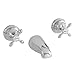 Astaire Double Handle Tub Faucet Trim with Metal Cross HandlesThe Astaire Collection from Newport Brass is traditionally styled combined with a modern touch for an elegant look. The Astaire Collection is a simple but bold style that looks great in any household. Newport Brass lavatory faucets are available in several different styles with 25 unique finish options. Every Newport Brass bathroom faucet is CA/VT low lead compliant and WaterSense certified. Solid brass construction and ceramic disc cartridges ensure that your Newport Brass bath faucet will last the test of time. You will see why Newport Brass boasts Flawless Beauty from Faucet to FinishFeatures:Double handle tub filler faucetSolid brassADA compliant cross handleRequires Newport Brass Valve : 1-500 (sold separately)Includes :Lever Handles and EscutcheonsSolid Brass Tub SpoutFinish Features:Available in 25 beautiful finishesNew Industry Leading lacquer Finish ProcessIAPMO Certified and testedLong Life Finishes - 10 Year WarrantyDurable, color protected, scratch resistantGreen, low VOC, energy efficient finishing processSpecifications:Handle type : Metal cross handlesMaterial : Solid BrassHandles Included : YesSpout length : 7-7/16"Centers : 8"Overall width : 9-7/16"