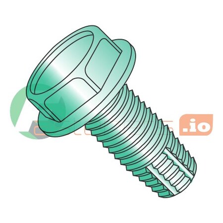 Thread Cutting Screws, 8-32 x 1/2" Type F Grounding Thread Cutting Screws / Unslotted / Hex Washer Head / Steel / Zinc Green