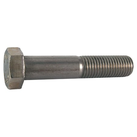 An externally threaded fastener with a hexagonal head, washer-face beneath the head, a metric thread pitch, made from stainless steel. Threaded shank does not extend completely to the head.