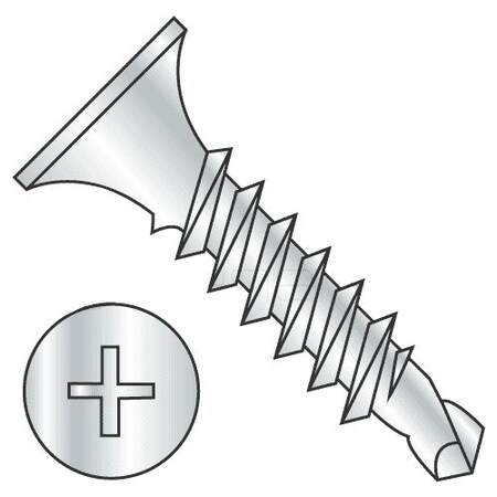 Self-Drilling Screw, #8 x 2-5/8 in, Zinc Plated Steel Flat Head Phillips Drive, 2000 PK
