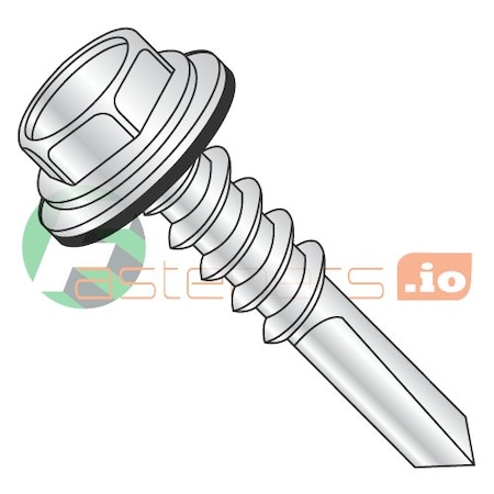 Self-Drilling Screws, #12 x 1 1/4" Self-Drilling Screws / Unslotted / Hex Washer Head / #5 Drill Pt / Steel / Zinc / Bonded Neoprene Washer / #5 Drill Point