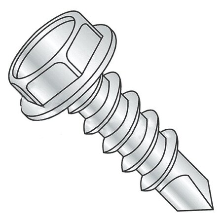 #12-14 x 1 1/2" Self Drilling Screws, Steel, Zinc Plating, Indented Hex Washer, Unslotted, 3 Point (Quantity: 1500 pcs)