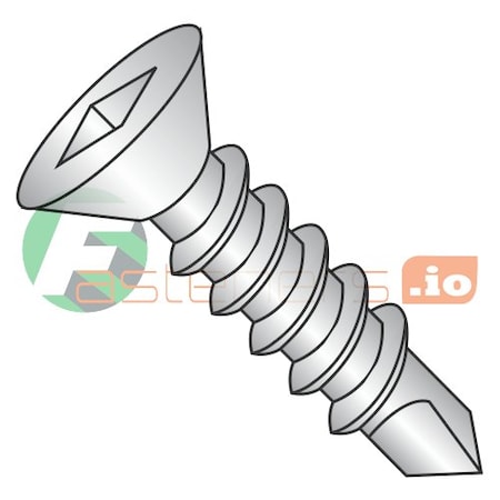 Self-Drilling Screw, #12 x 1-1/2 in, 18-8 Stainless Steel Flat Head Square Drive, 1000 PK