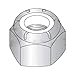 Hex nut with a nylon filled collar at its back end. When a screw reaches the collar, the threads and nylon form a tight, frictional fit, restricting movement of the screw when it is subjected to vibration.