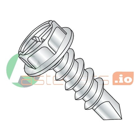 Self-Drilling Screw, #10 x 3/4 in, Zinc Plated Steel Hex Head Combination Slotted/Phillips Drive