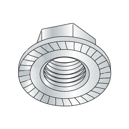 Serrated Large Flange Free-Spinning Locknut - The bearing surface of the flange has serrations which displace material on the mating surface when the nut is wrenched into place, forming a connection that resists loosening.