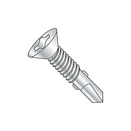 #12-24 x 2" Self Drilling Screws, Steel, Zinc Plating, Flat Head, Phillips Drive, 4 Point/Wings (Quantity: 1000 pcs)