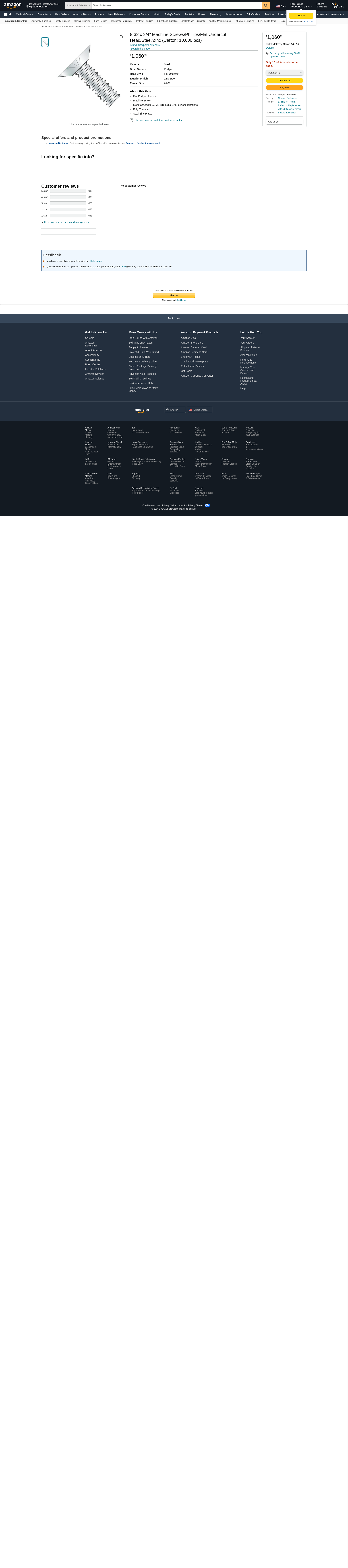 8-32 x 3/4" Machine Screws/Phillips/Flat Undercut Head/Steel/Zinc (Carton: 10,000 pcs)