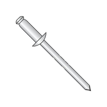 Blind Rivet, Dome Head Head, 1/4 in Dia., 1.000" L, Stainless Steel Body, 2000 PK