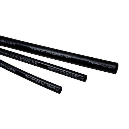 'Heat Shrink Tubing, Material Flexible Polyolefin, Heavy, Temp. Range -40 Degrees to 167 Degrees F, Shrink Ratio 4:1, Black, Length 6 In., Wire Range 14 to 6 AWG, I.D. Before Shrinking 0.472 In., I.D. After Shrinking 0.118 In., Wall Thickness After Shrinking 0.079 In., Max. Voltage 1000V, Features Adhesive Lined, Standards UL Recognized (No. E-91151), ANSI Qualified C119.2, Package Quantity 50'