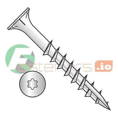 Wood Screws, #8 x 1 3/4" Deep Thread Wood Screws / Six-Lobe / Flat Head / Type 17 Pt / Steel / Zinc / With Nibs / T-20 Drive / Type 17 Point / With Nibs / 2/3 Thread