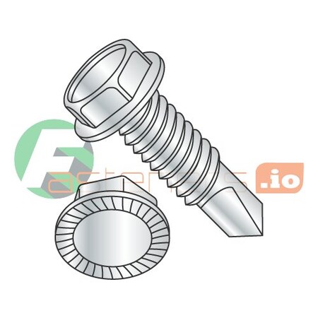 10-24 x 1" Self-Drilling Screws/Unslotted/Hex Washer Head/Steel/Zinc/Serrated / #3 Drill Point/Machine Screw Thread/Serrations Under Head (Carton: 5,000 pcs)