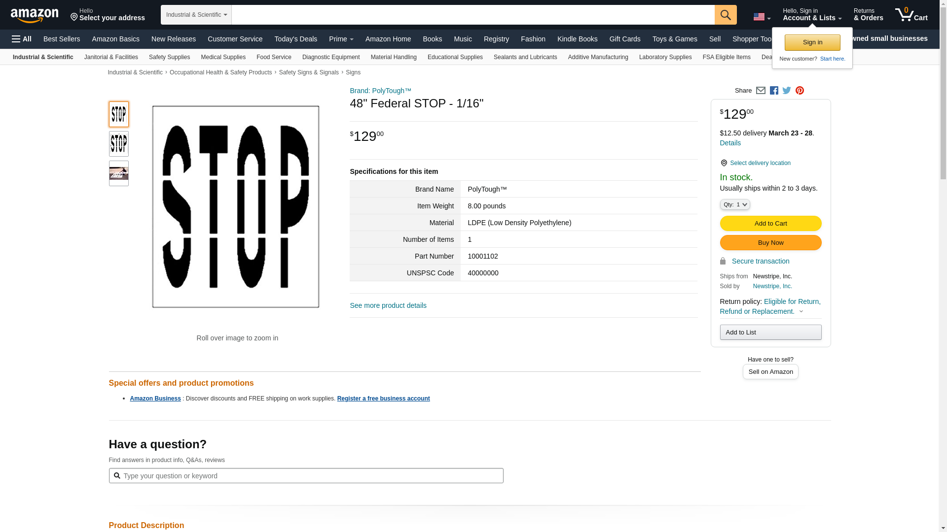 48" Federal STOP - 1/16"