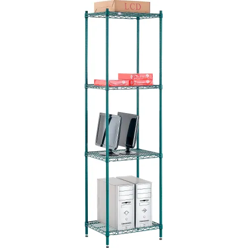 Nexel® 4 Shelf, Poly-Green® Wire Shelving Unit, Starter, 24"W x 14"D x 86"H