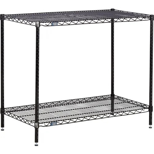 Nexel Black Epoxy, 2 Tier, Wire Shelving Starter Unit, 48" W x 14" D x 34" H