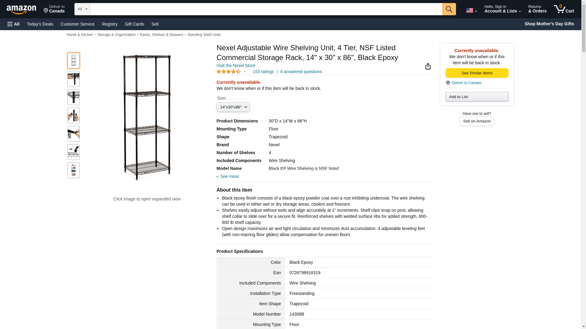 - 4-Shelf Shelving Unit Dimensions: 14" x 48" x 86"