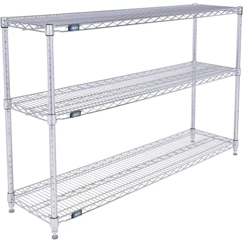 Nexel® 3 Shelf, Chrome Wire Shelving Unit, Starter, 54"W x 14"D x 34"H