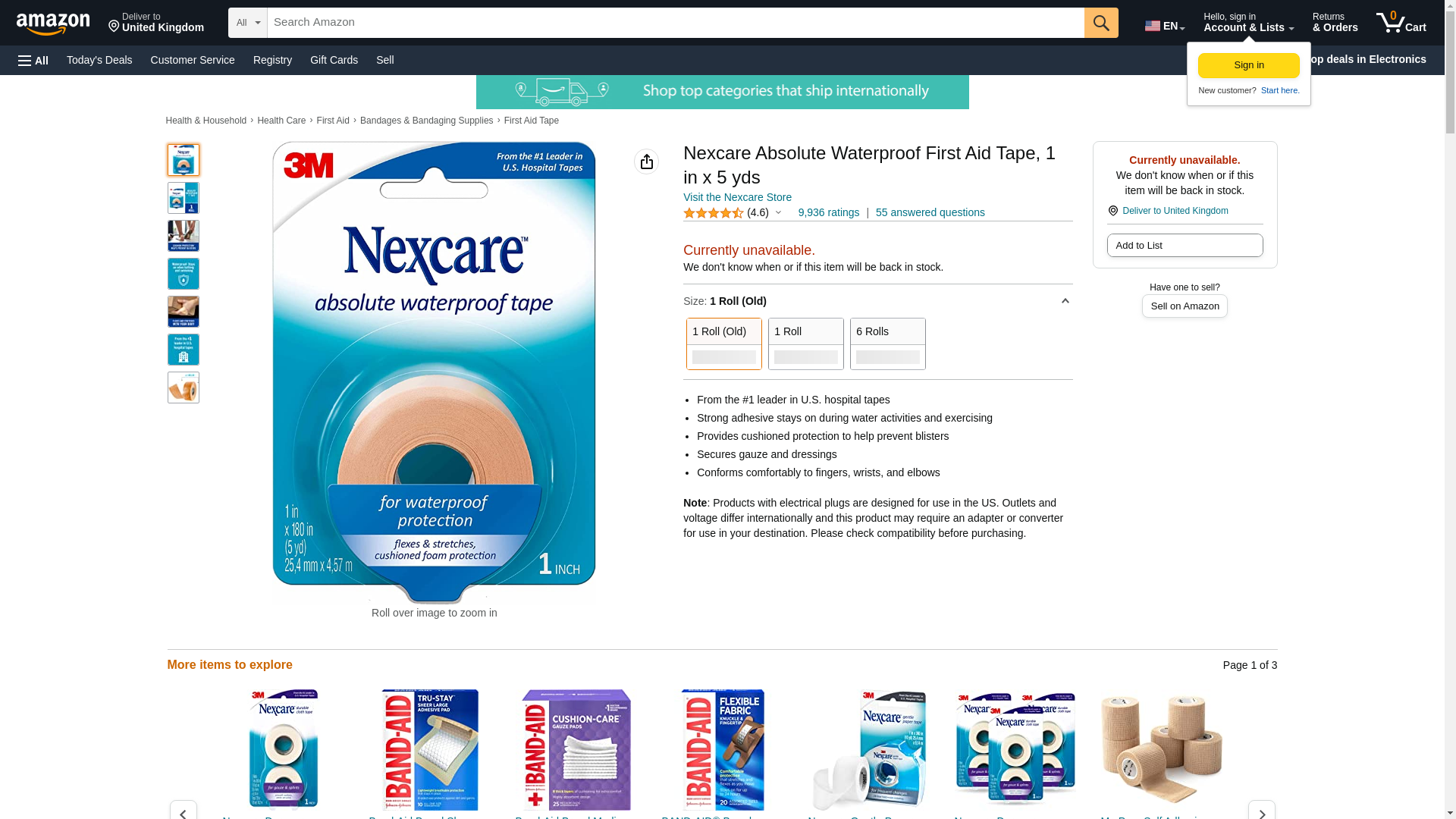 Nexcare Absolute Waterproof 1-Inch Wide Tape, 5-Yard Roll (Pack of 6)