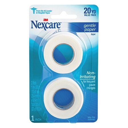 Nexcare Gentle Paper First Aid Tape, Ideal for Securing Gauze and Dressings, 1 in x 10 Yds Carded, 2 Pk