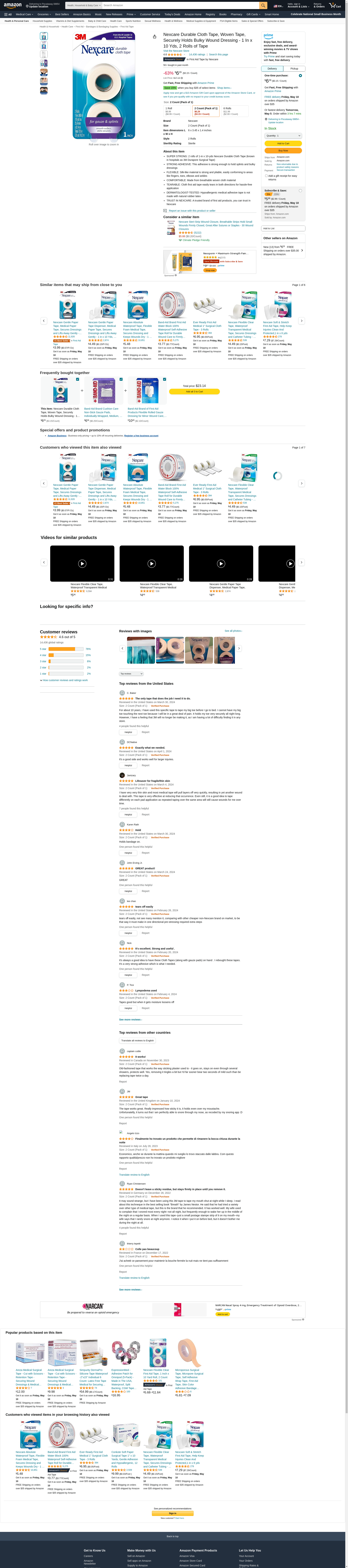 Nexcare Durable Cloth Carded 1-Inch Wide First Aid Tape, 10-Yard Roll, 2-Count Boxes (Pack of 2)