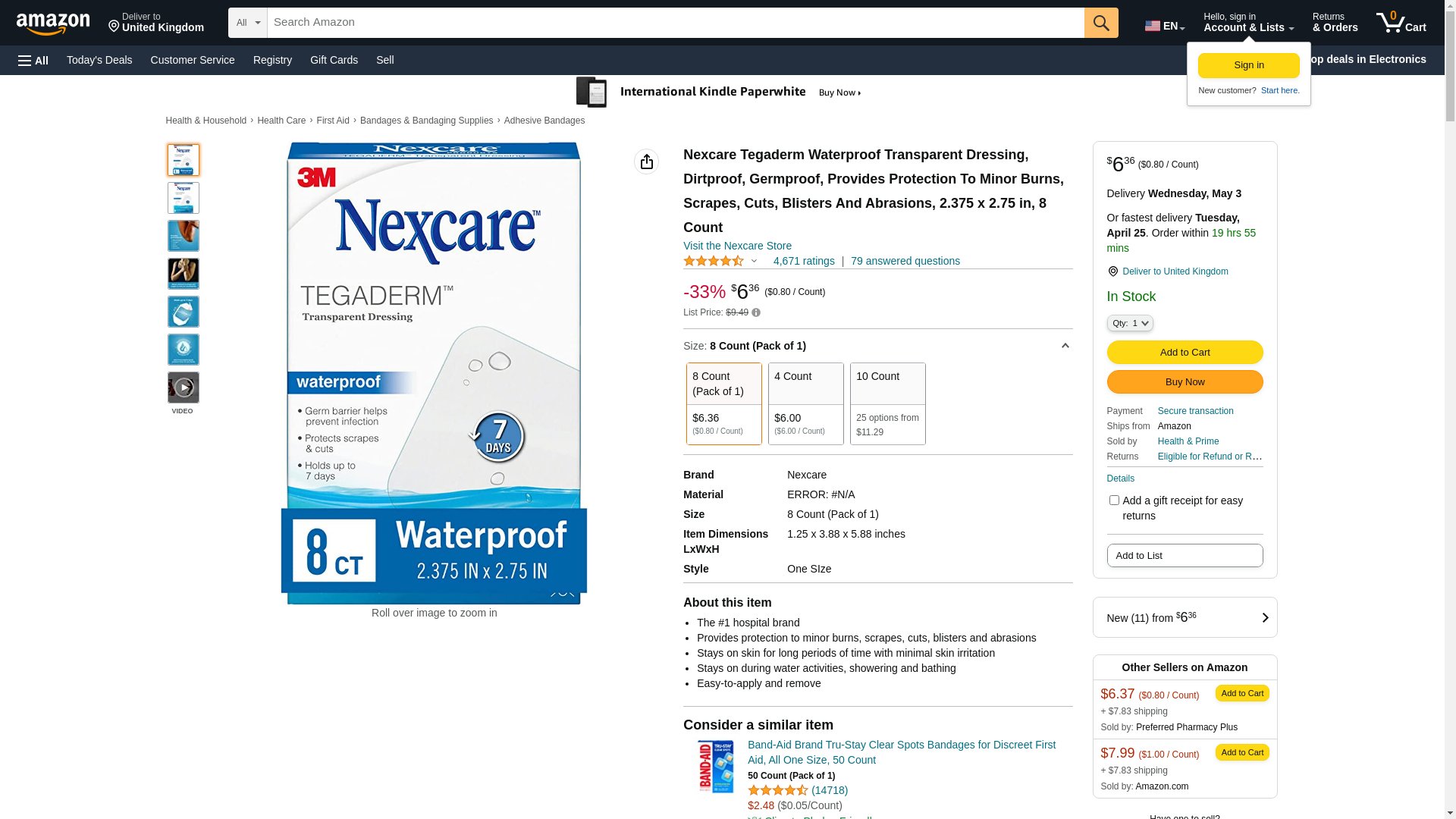 Nexcare Tegaderm Waterproof Transparent Dressing, Dirtproof, Germproof, Provides Protection To Minor Burns, Scrapes, Cuts, Blisters And Abrasions, 2.375 x 2.75 in, 8 Count