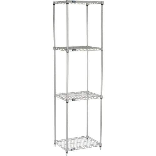 Nexel? 4 Shelf, Nexelate? Silver Epoxy Wire Shelving Unit, Starter, 24"W x 18"D x 86"H