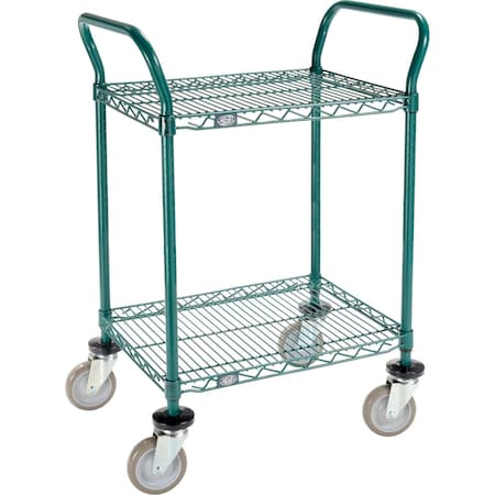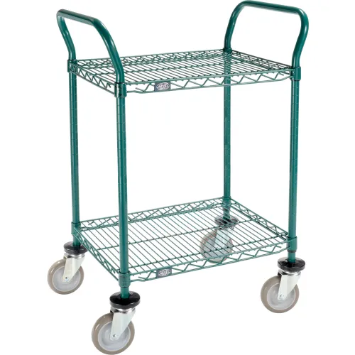 Nexel Utility Cart, 2 Shelf, Poly-Green, 24"L x 18"W x 39"H, Polyurethane Swivel Casters