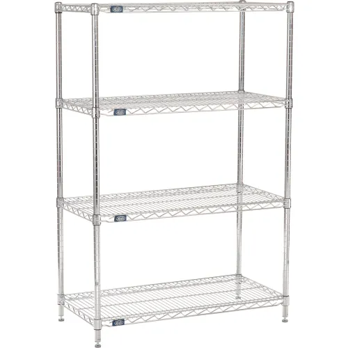 Nexel 18" x 36" x 54", 4 Tier Adjustable Wire Shelving Unit, NSF Listed Commercial Storage Rack, Chrome Finish, leveling feet