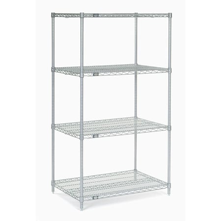Nexel 4-Shelf Wire Shelving Unit, Clear Epoxy Finish, 18"W x 36"L x 63"H