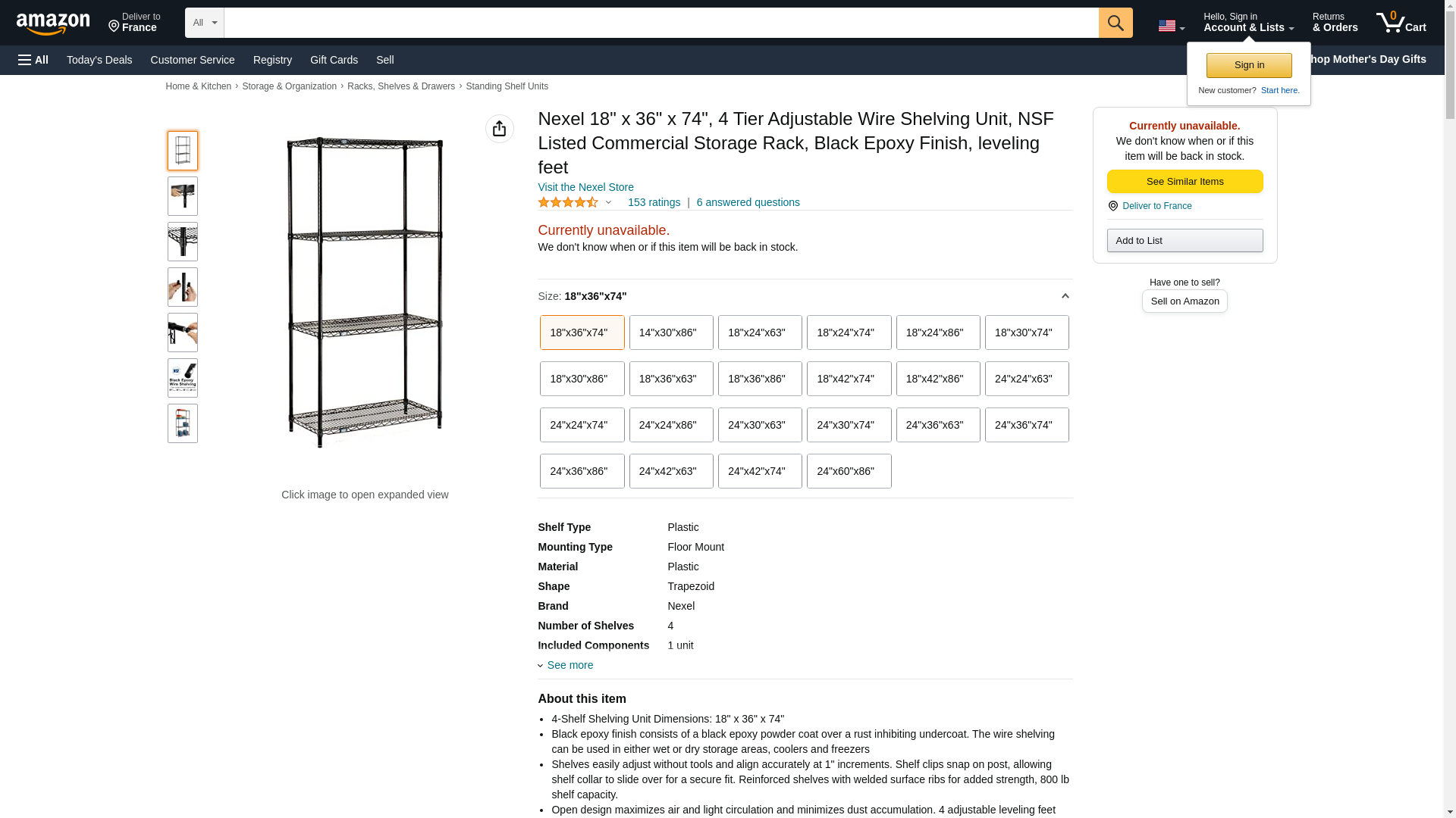 - 4-Shelf Shelving Unit Dimensions: 18" x 36" x 74"
