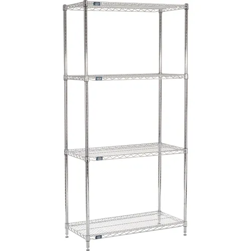 Nexel 4-Shelf Wire Shelving Unit, Chrome Finish, 18"W x 36"L x 74"H