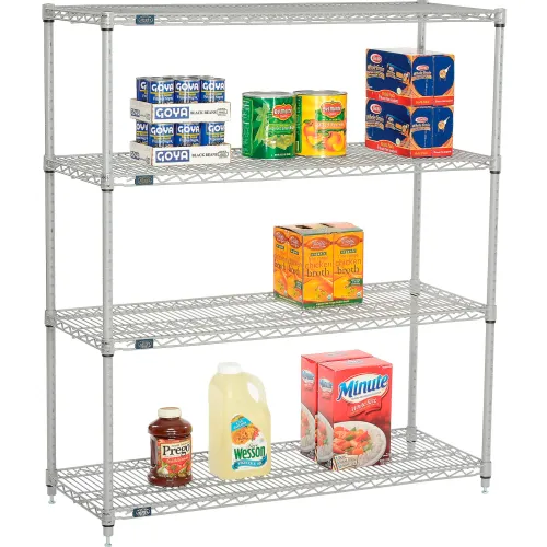 Nexel 18" x 48" x 54", 4 Tier, NSF Listed Adjustable Wire Shelving, Unit Commercial Storage Rack, Silver Epoxy, Leveling feet