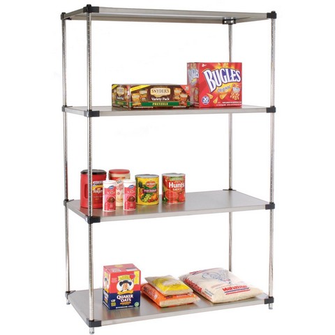 Nexel Solid Shelving Kit 4-Tier Stainless 18x48x74 18487SS