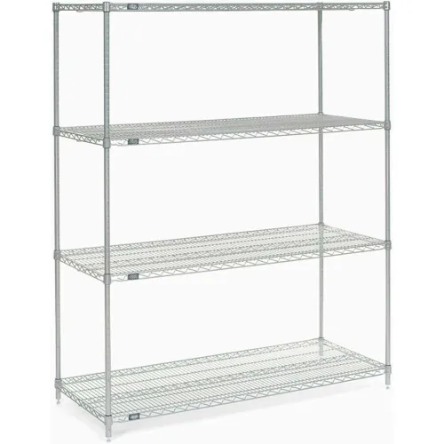 Poly-Z-Brite® 5 Tier Wire Shelving Starter Unit, 54"W x 18"D x 74"H. Poly-Z-Brite® features a true powder-epoxy over zinc-chromate electro-plating that ensures a strong durable finish and handles temperature and moisture extremes well. Open design maximizes air and light circulation and minimizes dust accumulation. Shelves easily adjust without tools and align accurately at 1" increments. Shelf clips snap on post, allowing shelf collar to slide over for a secure fit. Starter Units include 5 shelves, 4 posts, shelf clips and 4 adjustable leveling feet (with non-marring floor glides) which allow compensation for uneven floors. , Lot of 1