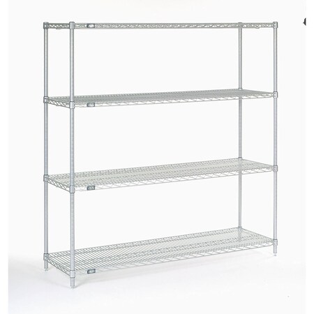 Nexel 4-Shelf Wire Shelving Unit, Clear Epoxy Finish, 18"W x 60"L x 63"H