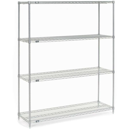 Nexel 4-Shelf Wire Shelving Unit, Clear Epoxy Finish, 18"W x 60"L x 74"H