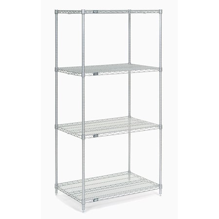 Nexel 4-Shelf Wire Shelving Unit, Clear Epoxy Finish, 21" W x 24" L x 86" H