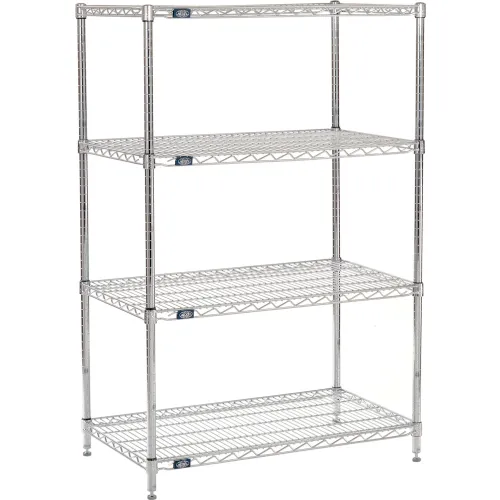 Nexel Adjustable Wire Shelving Unit, 4 Tier, Commercial Dry Storage Rack, 21" x 36" x 54", Chrome