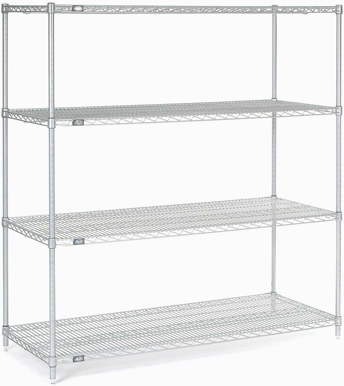 Nexel Industries products are manufactured for their rigidity and strength so theyre used widely in the food service and healthcare industrial and commercial markets Guaranteed against rust corrosion These products come with maximum storage space and are easy to clean and maintainfeatures. Fifteen-year limited warranty against rust and corrosion. Good for wet or dry environment. It resembles the appearance of chrome. 600800 Pound Shelf Capacity. Unit comes with 4 shelves and 4 posts. Electroplating starter shelf unitspecifications. Polyzbrite color. Diamond finish. Max Height Top to Bottom 63. Max Width Side to Side 42. Max Depth Front to Back 21. Weight: 62