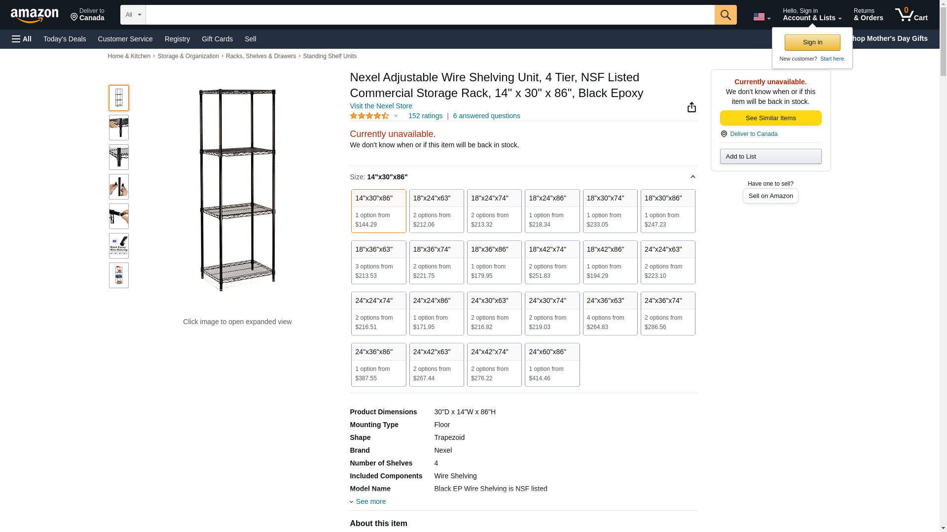 Nexel Adjustable Wire Shelving Unit, 4 Tier, NSF Listed Commercial Storage Rack, 21" x 48" x 63", Black Epoxy