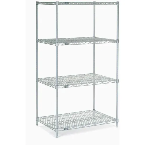 5 Tier Silver Epoxy Wire Shelving Starter Unit, 48"W x 21"D x 63"H. Nexelate™ Starter Units feature an attractive finish that consists of a Silver Epoxy powder-coat over a rust inhibiting undercoat. NSF approved for wet or dry use. Starter Unit includes 4 posts with leveling feet, 5 wire shelves and plastic snap on sleeves to secure shelves to posts. Reinforced shelves with welded surface ribs for added strength. Open design to maximize air and light circulation and minimize dust accumulation. Includes 4 posts, 5 shelves and snap on sleeves. Shelves easily adjust without tools at 1" increments. NSF approved for wet or dry use. , Lot of 1