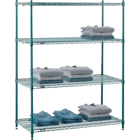 Nexel Poly-Green, 4 Tier, Wire Shelving Starter Unit, 48" W x 21" D x 63" H