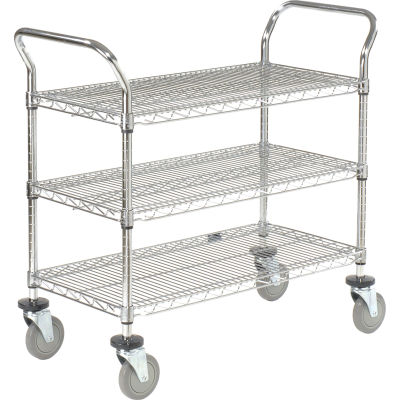 Nexel® Utility Cart, 3 Shelf, Chrome, 48"L, x 21"W, x 39"H, Polyurethane Brake Casters