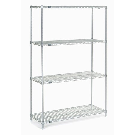 From Nexel Nexshelf Restaurant Shelving - Starter Shelving Unit, wire, 4 shelves, 4 posts and plastic shelf clips, 74"H, 21"W, 54"L, chrome-plated finish, shipped unassembled - Your Source for Quality Restaurant Equipment and Supplies.